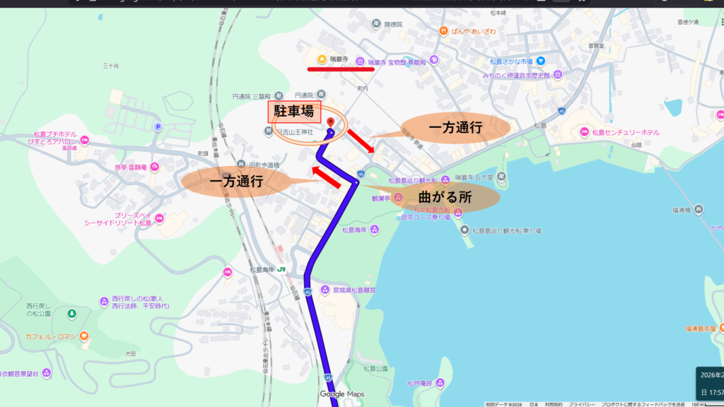 ただし、1日で回る場合はかなりタイト。回れない事もないが、じっくりとは見ていられない。食事も楽しめない可能性大。瑞巌寺の閉門時間が3時30分の時期があることに注意が必要。お寺を回る時間を考えると2時30分には瑞巌寺のタイムズにいたい。
