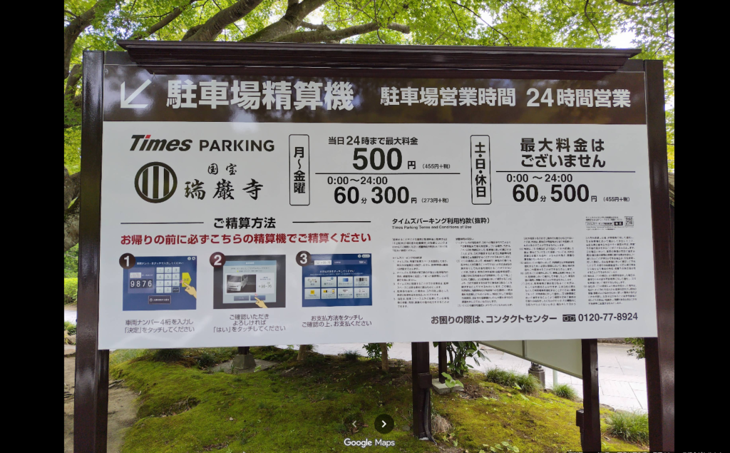 開門は午前8時30分。閉門時間は月により細かく分かれている。最短午後3時30分、最長午後5時。※閉門時間なので、お寺を見て回る時間を考えたら1時間前には駐車場に着いていたい。