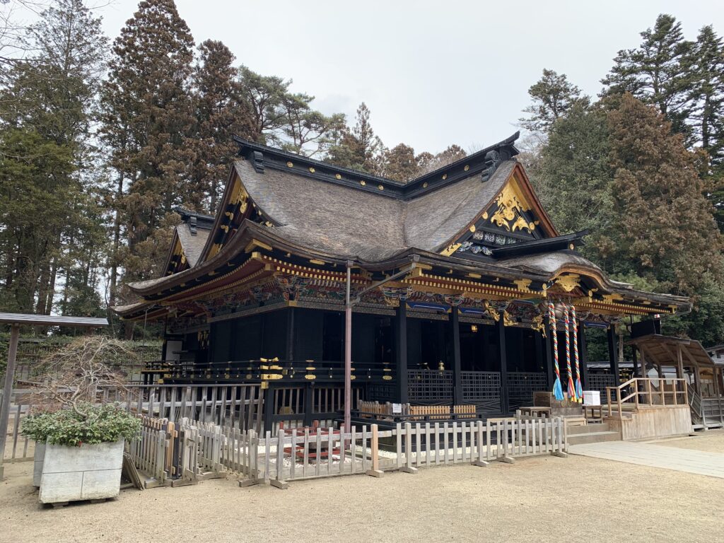 大崎八幡宮は伊達政宗によって、当時最も先端的な桃山様式をもって造営された。この社殿はいわゆる権現造の形式をもっている。